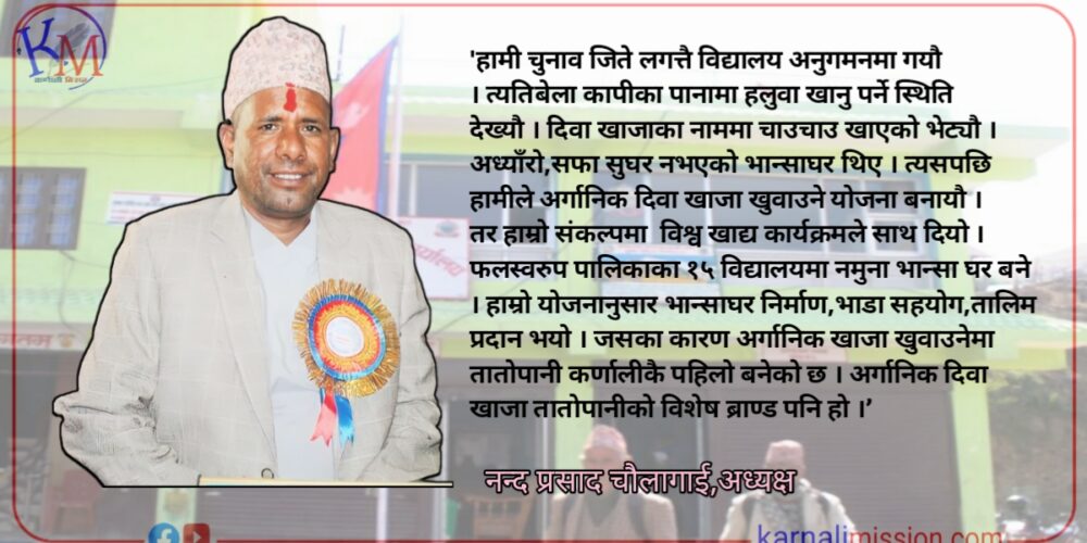 विद्यालयमा पाेषिलाे दिवा खाजा खुवाउने तयारी गर्दै चन्दननाथ