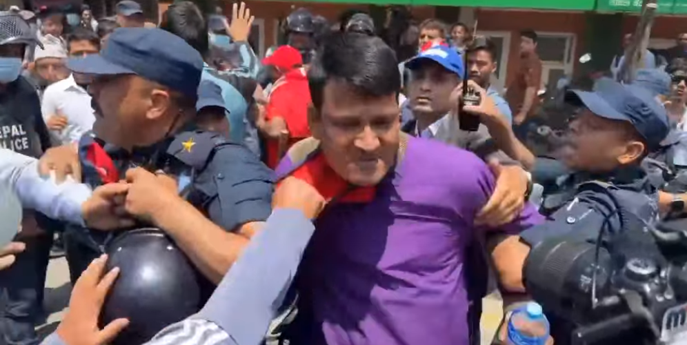 शिक्षकहरूको आन्दोलनमा घुसपैठ गरेको भन्दै एक जना प्रहरीकाे नियन्त्रणमा