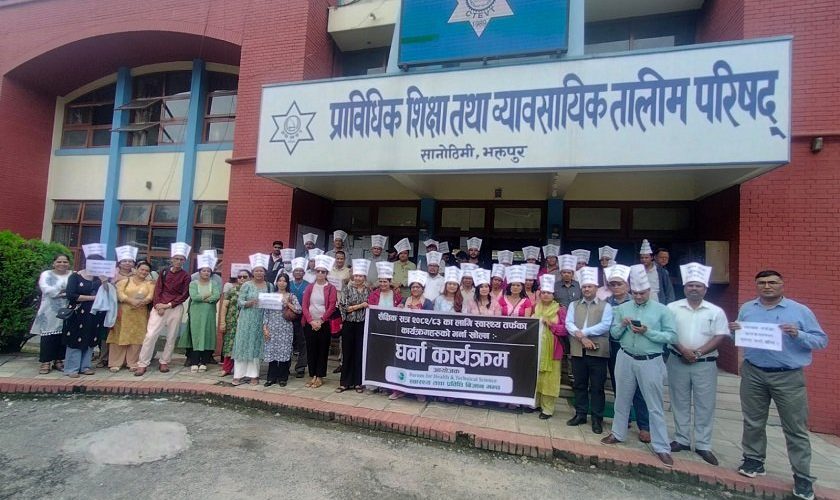 स्वास्थ्यतर्फका शैक्षिक कार्यक्रममा भर्ना खोल्न माग गर्दै सीटीईभीटीमा धर्ना