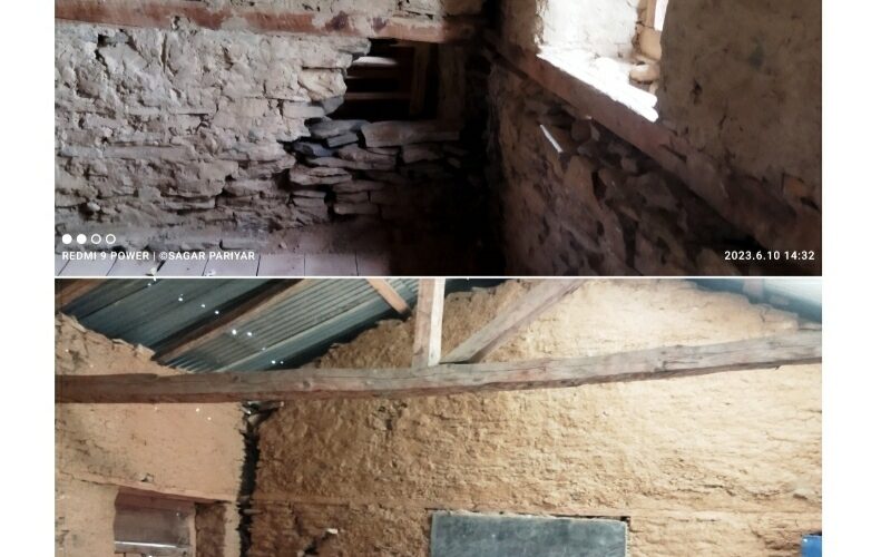भत्कीएका पर्खाल र चुहिने छानाभित्र जोखिम माेलेर पढ्दै बालबालिका