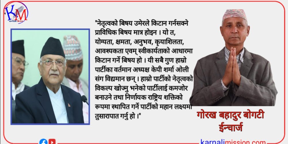 एमालेकाे नेतृत्वमा केपी ओलीको बिकल्प छैन्: ईन्चार्ज बाेगटी