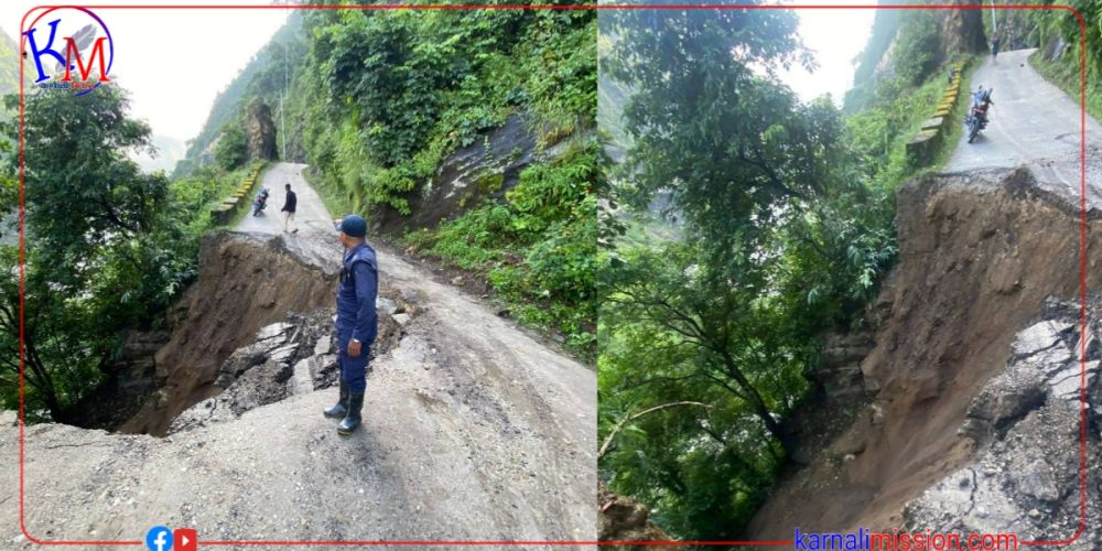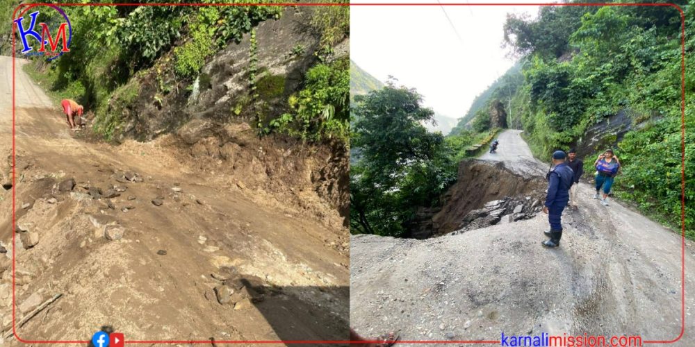 कालेखाेलामा सडक भत्कियाे,कर्णाली राजमार्ग अबरुद्व