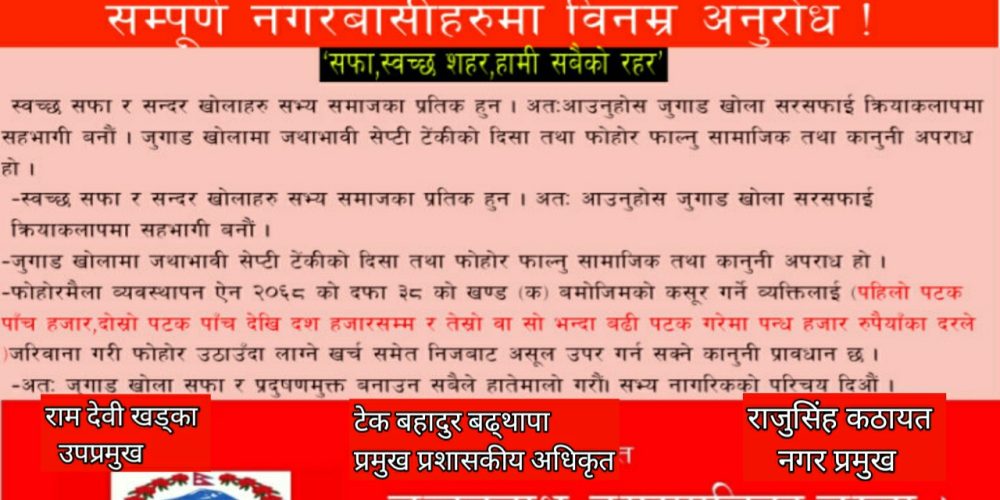 ताताेपानी गाउँपालिका वडा नं १ काे जनहितमा जारी सन्देश